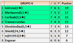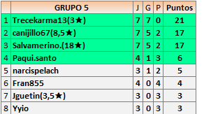 Deja un comentarioEn está página se irán publicando los resultados de las diferentes partidas, siendo ambos jugadores responsables de subirlos o de comprobar que ya hayan sido publicados insertando un COMENTARIO en la parte inferior de la pantalla (opción “Deja tu comentario”), indicando el nombre de los dos jugadores y los puntos obtenidos en la partida.