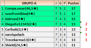 En está página se irán publicando los resultados de las diferentes partidas, siendo ambos jugadores responsables de subirlos o de comprobar que ya hayan sido publicados insertando un COMENTARIO en la parte inferior de la pantalla (opción “Deja tu comentario”), indicando el nombre de los dos jugadores y los puntos obtenidos en la partida.