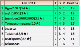 Deja un comentarioEn está página se irán publicando los resultados de las diferentes partidas, siendo ambos jugadores responsables de subirlos o de comprobar que ya hayan sido publicados insertando un COMENTARIO en la parte inferior de la pantalla (opción “Deja tu comentario”), indicando el nombre de los dos jugadores y los puntos obtenidos en la partida.