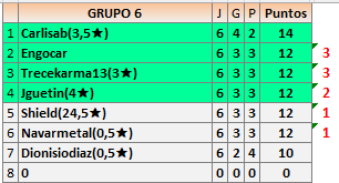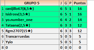 Deja un comentarioEn está página se irán publicando los resultados de las diferentes partidas, siendo ambos jugadores responsables de subirlos o de comprobar que ya hayan sido publicados insertando un COMENTARIO en la parte inferior de la pantalla (opción “Deja tu comentario”), indicando el nombre de los dos jugadores y los puntos obtenidos en la partida.