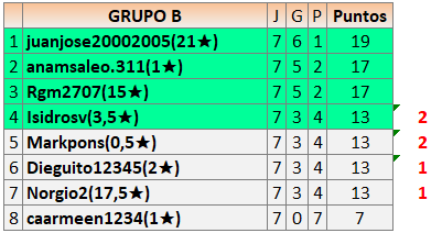 Deja un comentarioEn está página se irán publicando los resultados de las diferentes partidas, siendo ambos jugadores responsables de subirlos o de comprobar que ya hayan sido publicados insertando un COMENTARIO en la parte inferior de la pantalla (opción “Deja tu comentario”), indicando el nombre de los dos jugadores y los puntos obtenidos en la partida.