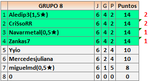 Deja un comentarioEn está página se irán publicando los resultados de las diferentes partidas, siendo ambos jugadores responsables de subirlos o de comprobar que ya hayan sido publicados insertando un COMENTARIO en la parte inferior de la pantalla (opción “Deja tu comentario”), indicando el nombre de los dos jugadores y los puntos obtenidos en la partida.