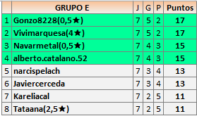 Deja un comentarioEn está página se irán publicando los resultados de las diferentes partidas, siendo ambos jugadores responsables de subirlos o de comprobar que ya hayan sido publicados insertando un COMENTARIO en la parte inferior de la pantalla (opción “Deja tu comentario”), indicando el nombre de los dos jugadores y los puntos obtenidos en la partida.