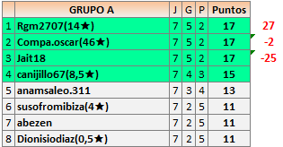 En está página se irán publicando los resultados de las diferentes partidas, siendo ambos jugadores responsables de subirlos o de comprobar que ya hayan sido publicados insertando un COMENTARIO en la parte inferior de la pantalla (opción “Deja tu comentario”), indicando el nombre de los dos jugadores y los puntos obtenidos en la partida.