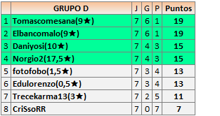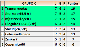 Deja un comentarioEn está página se irán publicando los resultados de las diferentes partidas, siendo ambos jugadores responsables de subirlos o de comprobar que ya hayan sido publicados insertando un COMENTARIO en la parte inferior de la pantalla (opción “Deja tu comentario”), indicando el nombre de los dos jugadores y los puntos obtenidos en la partida.