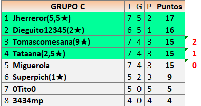 Deja un comentarioEn está página se irán publicando los resultados de las diferentes partidas, siendo ambos jugadores responsables de subirlos o de comprobar que ya hayan sido publicados insertando un COMENTARIO en la parte inferior de la pantalla (opción “Deja tu comentario”), indicando el nombre de los dos jugadores y los puntos obtenidos en la partida.