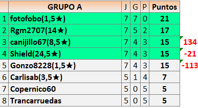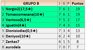 Deja un comentarioEn está página se irán publicando los resultados de las diferentes partidas, siendo ambos jugadores responsables de subirlos o de comprobar que ya hayan sido publicados insertando un COMENTARIO en la parte inferior de la pantalla (opción “Deja tu comentario”), indicando el nombre de los dos jugadores y los puntos obtenidos en la partida.