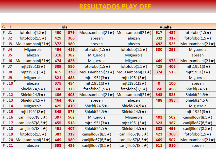 Fin PLAY OFF VUELTA: 11 de FEBRERO a las 21:00