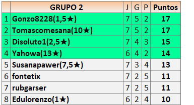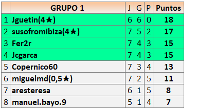Deja un comentarioEn está página se irán publicando los resultados de las diferentes partidas, siendo ambos jugadores responsables de subirlos o de comprobar que ya hayan sido publicados insertando un COMENTARIO en la parte inferior de la pantalla (opción “Deja tu comentario”), indicando el nombre de los dos jugadores y los puntos obtenidos en la partida.