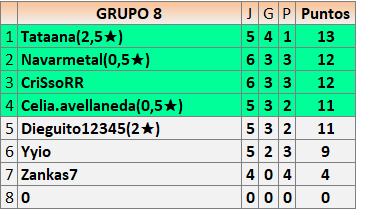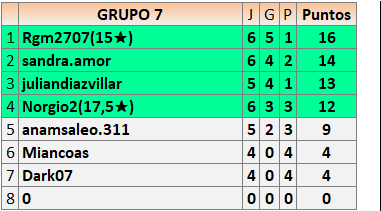 Deja un comentarioEn está página se irán publicando los resultados de las diferentes partidas, siendo ambos jugadores responsables de subirlos o de comprobar que ya hayan sido publicados insertando un COMENTARIO en la parte inferior de la pantalla (opción “Deja tu comentario”), indicando el nombre de los dos jugadores y los puntos obtenidos en la partida.
