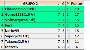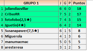 Deja un comentarioEn está página se irán publicando los resultados de las diferentes partidas, siendo ambos jugadores responsables de subirlos o de comprobar que ya hayan sido publicados insertando un COMENTARIO en la parte inferior de la pantalla (opción “Deja tu comentario”), indicando el nombre de los dos jugadores y los puntos obtenidos en la partida.
