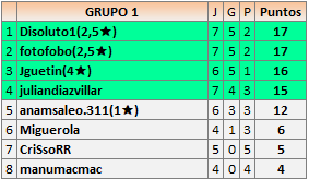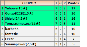 En está página se irán publicando los resultados de las diferentes partidas, siendo ambos jugadores responsables de subirlos o de comprobar que ya hayan sido publicados insertando un COMENTARIO en la parte inferior de la pantalla (opción “Deja tu comentario”), indicando el nombre de los dos jugadores y los puntos obtenidos en la partida.