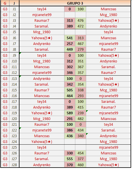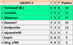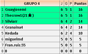 Se clasificarán 3 jugadores de cada grupo, más el mejor 4º.