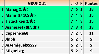 Deja un comentarioEn está página se irán publicando los resultados de las diferentes partidas, siendo ambos jugadores responsables de subirlos o de comprobar que ya hayan sido publicados insertando un COMENTARIO en la parte inferior de la pantalla (opción “Deja tu comentario”), indicando el nombre de los dos jugadores y los puntos obtenidos en la partida.
