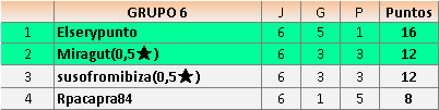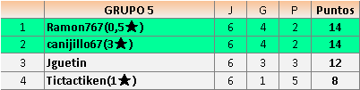 1En está página se irán publicando los resultados de las diferentes partidas, siendo ambos jugadores responsables de subirlos o de comprobar que ya hayan sido publicados insertando un COMENTARIO en la parte inferior de la pantalla (opción “Deja tu comentario”), indicando el nombre de los dos jugadores y los puntos obtenidos en la partida.