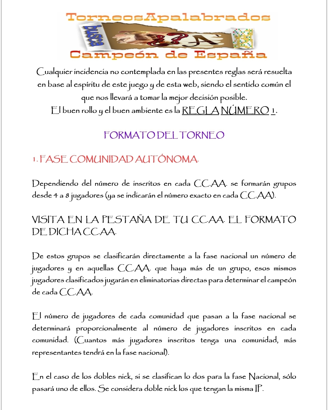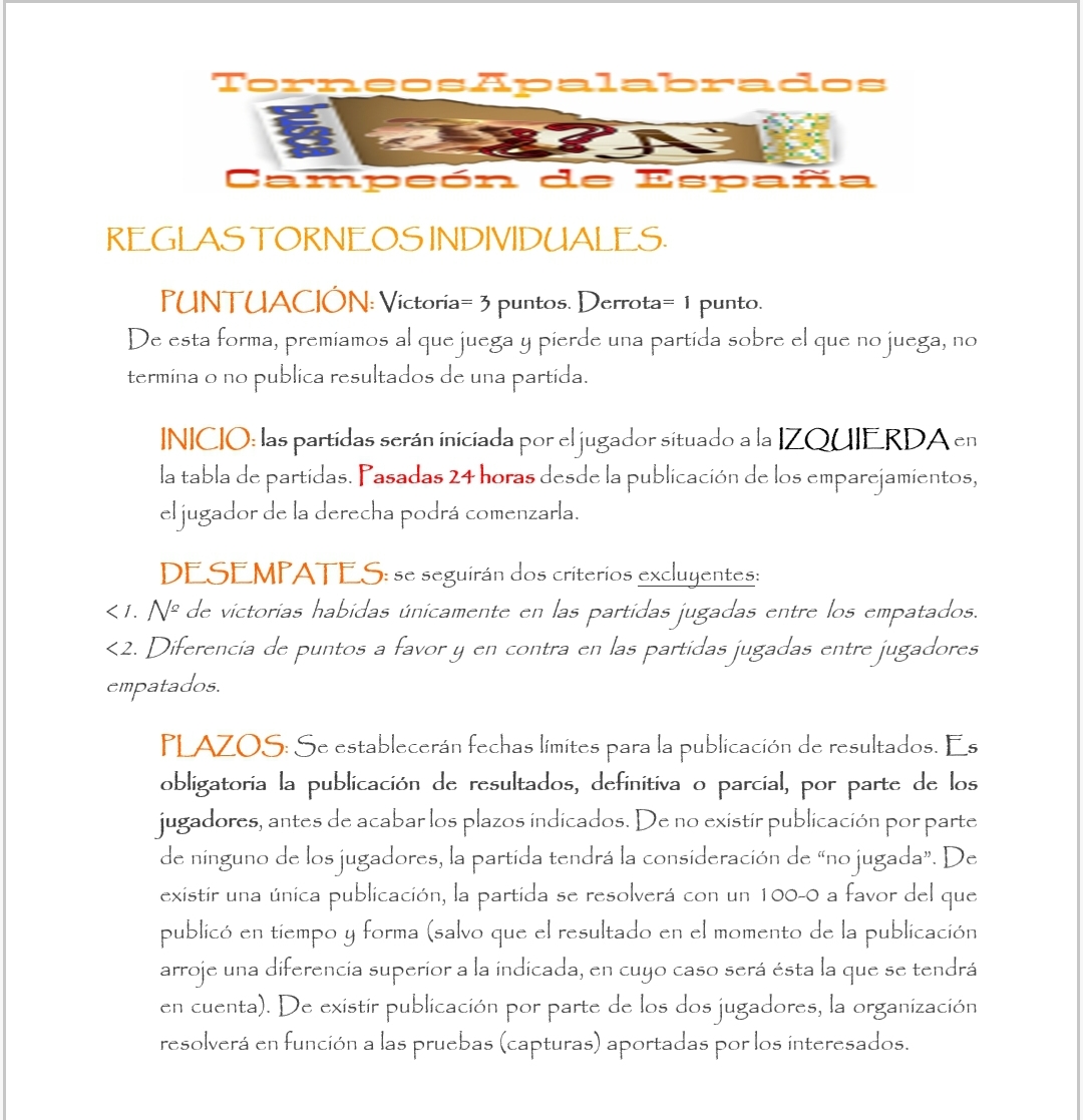 Si. Como bien pone, nos regimos por las reglas de los torneos individuales de nuestra web