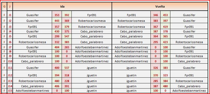 Deja un comentarioEn está página se irán publicando los resultados de las diferentes partidas, siendo ambos jugadores los responsables de subirlos, o comprobando que ya hayan sido subidos, insertando un COMENTARIO en la parte inferior de la pantalla (opción “Deja tu comentario“), indicando el nombre de los dos jugadores y los puntos obtenidos en la partida.