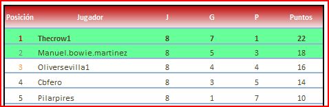 Deja un comentarioEn está página se irán publicando los resultados de las diferentes partidas, siendo ambos jugadores los responsables de subirlos, o comprobando que ya hayan sido subidos, insertando un COMENTARIO en la parte inferior de la pantalla (opción “Deja tu comentario“), indicando el nombre de los dos jugadores y los puntos obtenidos en la partida.