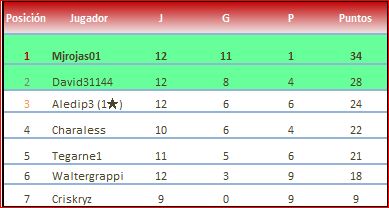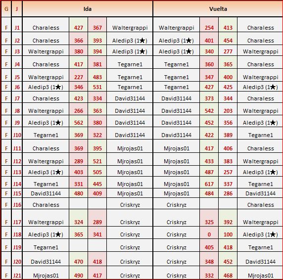 Deja un comentarioEn está página se irán publicando los resultados de las diferentes partidas, siendo ambos jugadores los responsables de subirlos, o comprobando que ya hayan sido subidos, insertando un COMENTARIO en la parte inferior de la pantalla (opción “Deja tu comentario“), indicando el nombre de los dos jugadores y los puntos obtenidos en la partida.