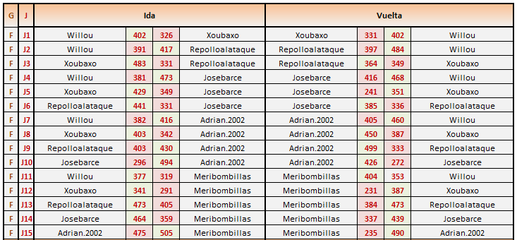 Deja un comentarioEn está página se irán publicando los resultados de las diferentes partidas, siendo ambos jugadores los responsables de subirlos, o comprobando que ya hayan sido subidos, insertando un COMENTARIO en la parte inferior de la pantalla (opción “Deja tu comentario“), indicando el nombre de los dos jugadores y los puntos obtenidos en la partida.