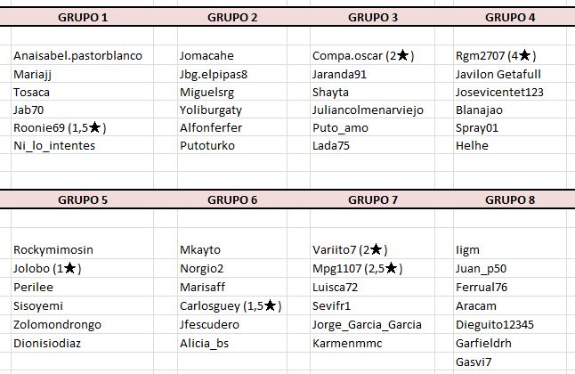 – SE FORMAN 8 GRUPOS EN LOS CUALES SE CLASIFICAN LOS 2 PRIMEROS DE CADA GRUPO.