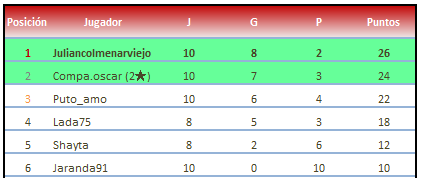 Los jugadores en la zona verde están clasificados para jugar la Fase Nacional del Campeonato de España y para los octavos de final del la Comunidad de Madrid que comienzan el 9 de Diciembre a la 00:00
