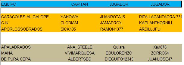 EN CASO DE EMPATE A 3 VICTORIAS DE CADA EQUIPO EL GANADOR SERÁ EL EQUIPO QUE SUME MAS PUNTOS ENTRE LAS 6 PARTIDAS