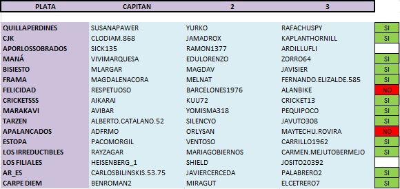 EQUIPOS CONFIRMADOS: