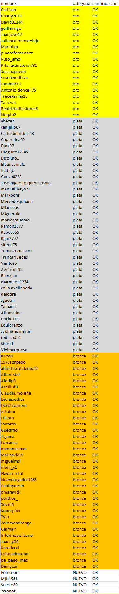 Confirme mi participación el día 4 /5 de septiembre para esta nueva andadura de la liga,la Temporada 22 pero no veo mi nick en BRONCE .