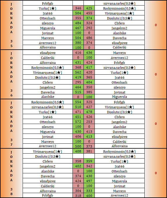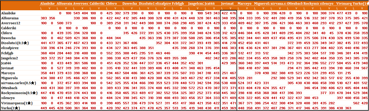 Buenas tardes, por motivos personales abandono esta competición, espero continuar en las próximas ediciones , disculpad las molestias