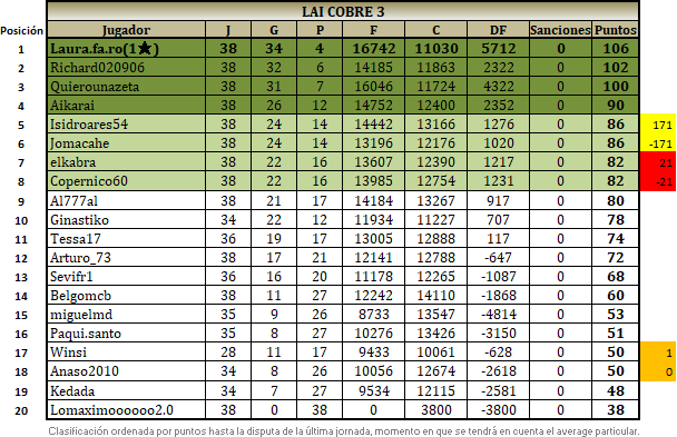 Cómo ha dicho Laura…enhorabuena a los que asciendan.Los participantes han sido correctos y hemos jugado en tiempo.