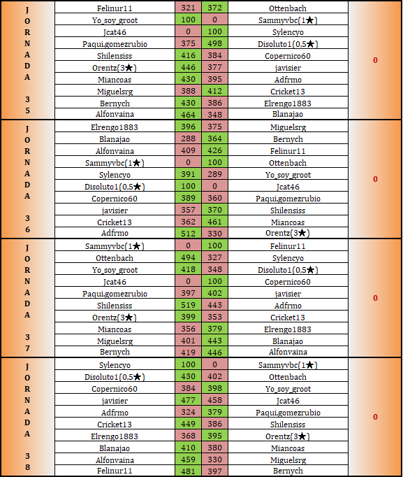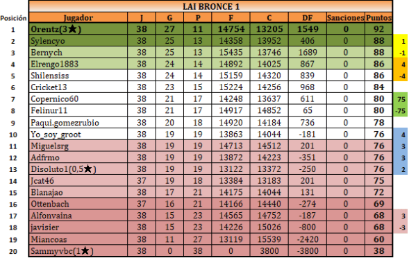Felicitaciones a orentz por campeonar, y a quienes ascienden, y suerte para rengo en la promoción. Yo estuve a un tris, pero en la 12 lo seguiré intentando.
