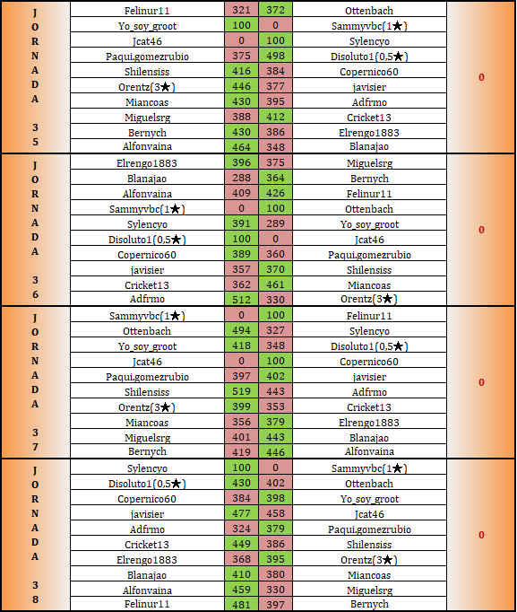 Felicitaciones a orentz por campeonar, y a quienes ascienden, y suerte para rengo en la promoción. Yo estuve a un tris, pero en la 12 lo seguiré intentando.