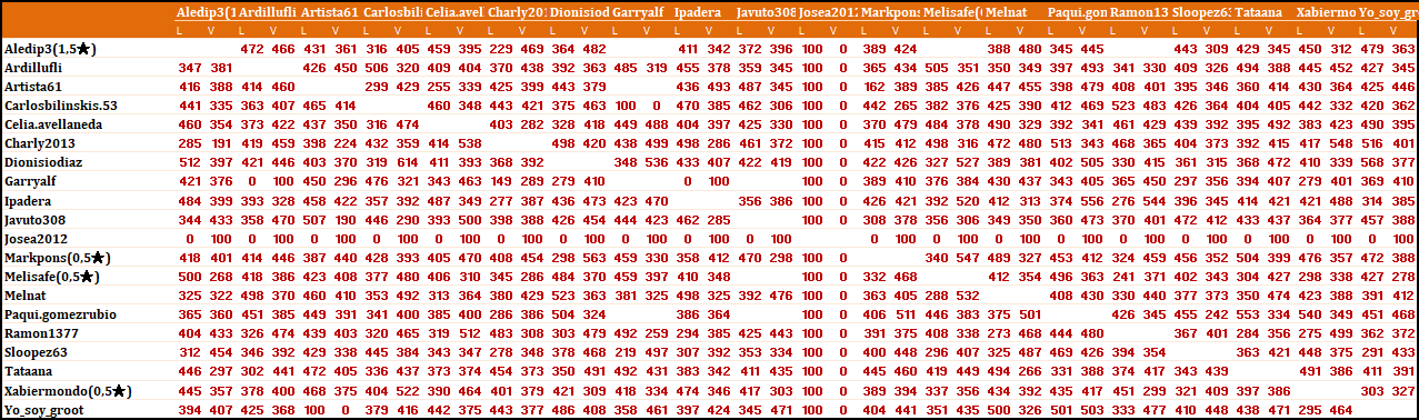 enhorabuena a los que has ascendido de catagoría y un saludo a los que han descendido.