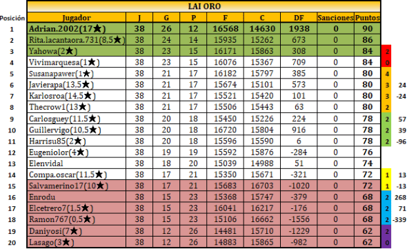 No comprendo que Harrisu85, clasificado en el puesto 11 con 78 puntos, descienda a Plata en lugar de hacerlo Sajvamerino17 que figura con 72 puntos en el puesto 15.