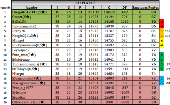 Recuerda que ya no hay PROMOCIONES, así que todos los ascensos y descensos son directos.