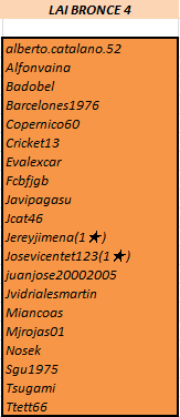 - Barcelones1976, Lozcansa, Miancoas y Siscozappa mantienen su puesto en Bronce.