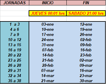 PRIMERA JORNADA COMENZARÁ EL 15 DE ENERO