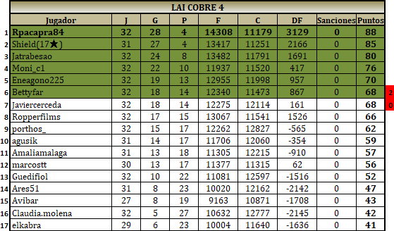 De los jugadores de Cobre, juegan los primeros y segundos puestos de todos los grupos y el mejor tercero.