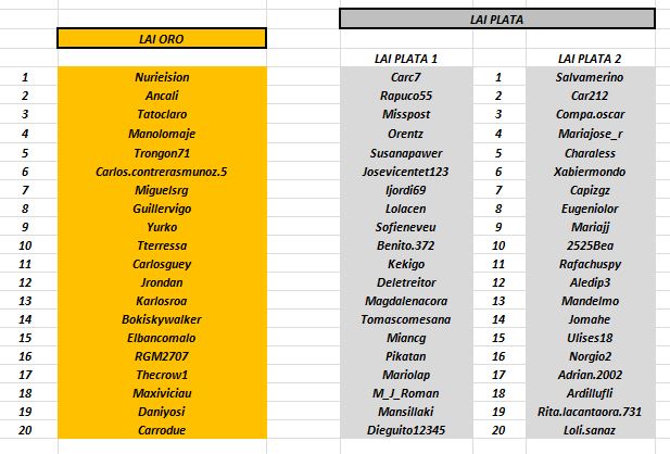 LAI ORO – PLATA ( Definitivos )