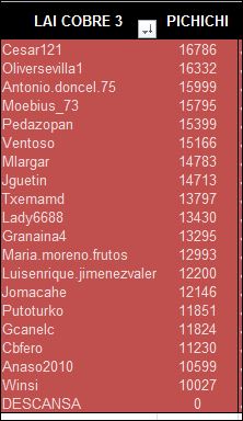 LAI COBRE 3 matrizLAI COBRE 3 pichichiDIPLOMA PICHICHI COBRE 3LAI COBRE 3 media ptosLAI COBRE 3 promedio puntosLAI COBRE 3 promedio victorias