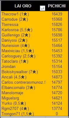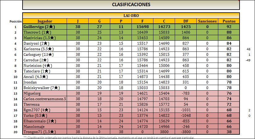 LAI ORO clasificacion