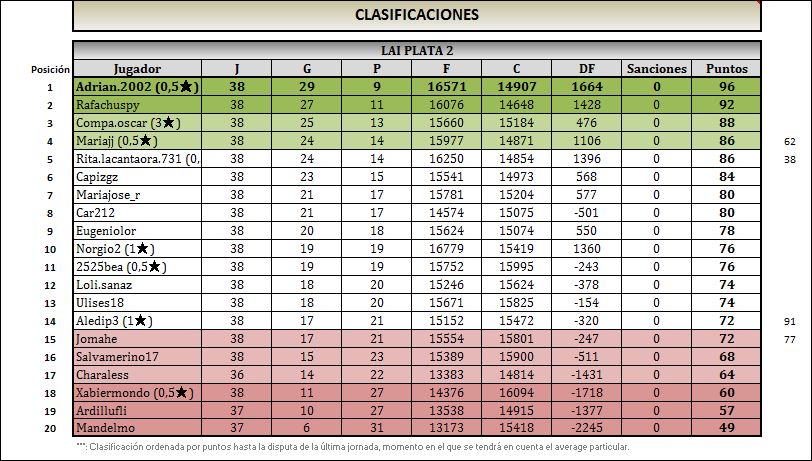 Felicidades al ganador y a los demás… la próxima liga (bronce) ya la gano yo y a la siguiente nos volvemos a ver…un placer jugar con todos vosotros…