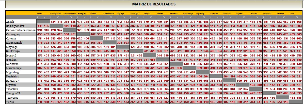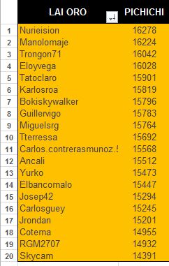 Al principio de la liga aposte con algunos, como por ejemplo Miguel, que fue cierto tiempo primero, que no se hiciera ilusiones que la LAI-ORO la ganarían Nuri ó Andres y lo que no esperaba es un acierto tan pleno, la reina Nuri y el rey Ancali.