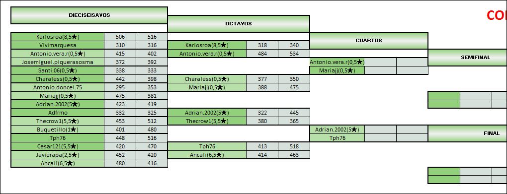 2. En caso de ganar una partida cada jugador el ganador será el que consiga mayor diferencia de puntos en su victoria, AVERAGE PARTICULAR