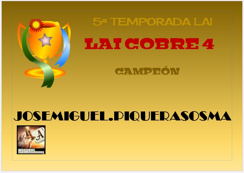 ENHORABUENA A JOSEMIGUEL.PIQUERASOSMA CAMPEÓN DE PRINCIPIO A FIN
