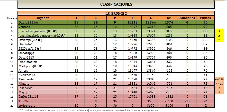 A ESPENSAS DE ABANDONOS DE JUGADORES DE JUGADORES DE ORO, PLATA Y BRONCE .. EL CUADRO FINAL QUEDA ASÍ