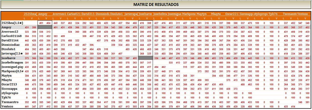 Felicitaciones a todos Los paricipantes, y un agradecimiento a la organización por el trabajo y la seriedad en esta responsabilidad, para que podamos pasar momentos competitivos en este juego.