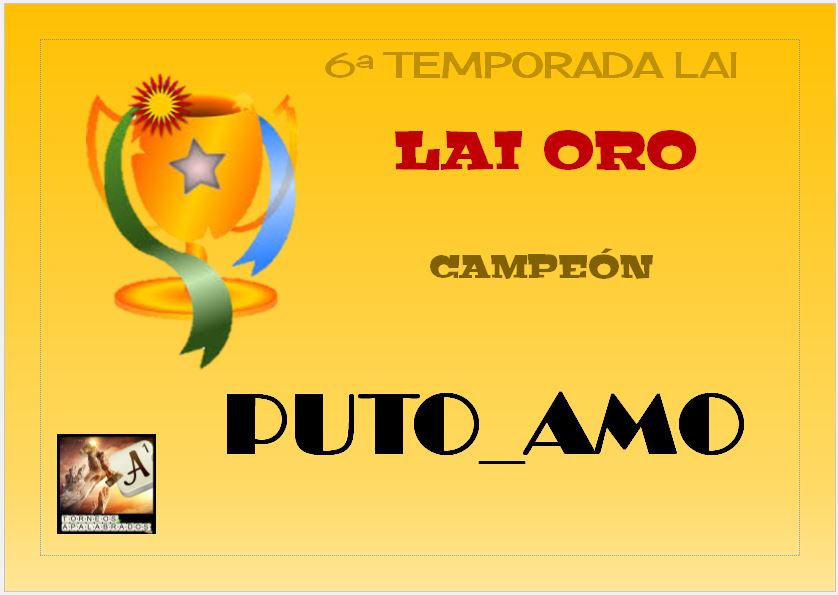 Cumplido mi objetivo de estar en la mejor liga, me puse como sueño no intentar no bajar… y al final se obró el milagro… Con suerte he podido ganar la «champions» de Torneosapalabrados».