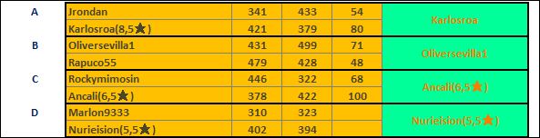 Ha sido un placer una vez más participar en la liga, aunque me ha tocado descender. Felicito a Ana Steele por la promoción y por su amabilidad. Nunca gusta perder pero si es contra una rival así, duele menos. Desearos a rodos, organización y participantes, un buen verano. Nos vemos en la temporada siguiente. Saludos
